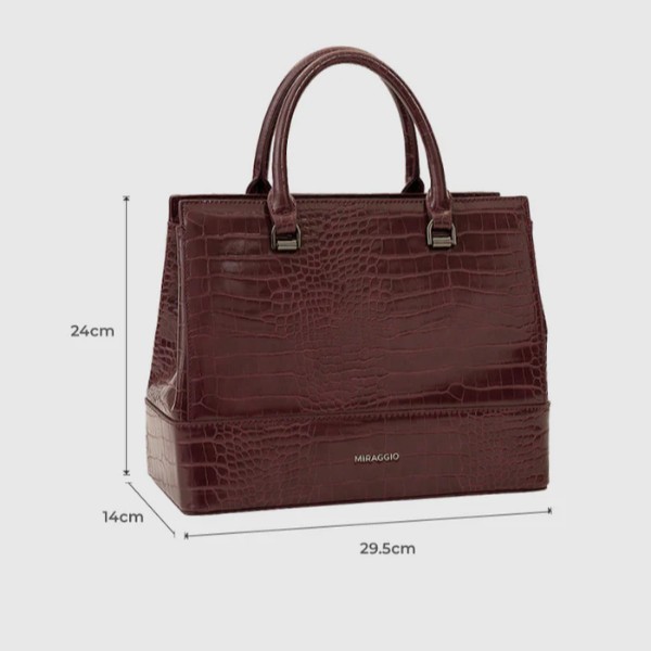 This top-handle bag is a true classic. The faux croc leather in versatile neutrals adds to the grace of the design. The Clara Satchel handbag will go perfectly from desk to dinner looks with finesse. Specifications: Detachable & adjustable shoulder strap Double top handle 2 zip pocket, 1 mobile pocket Length- 29.5cm Width- 14cm Height- 24cm